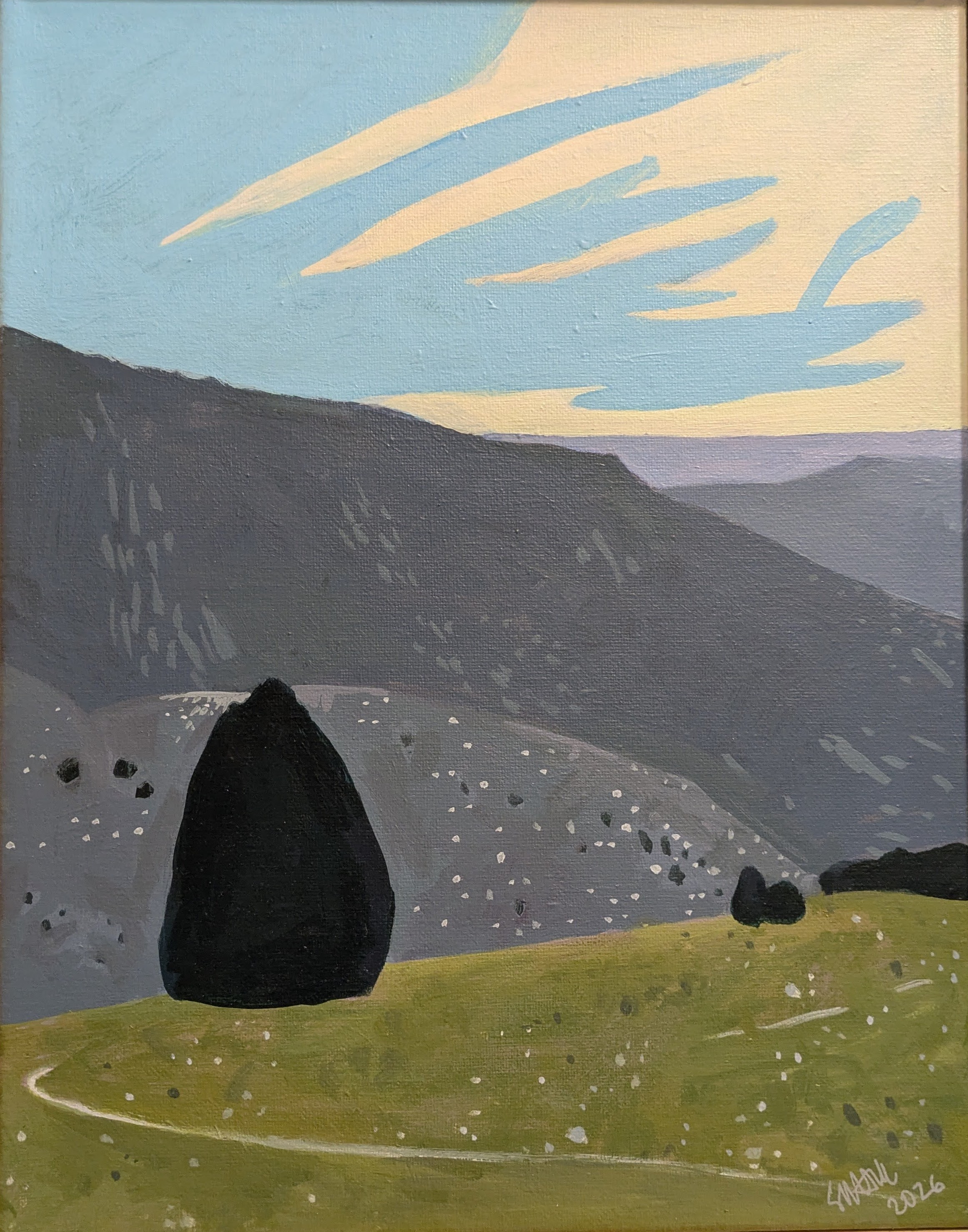 Juniper Purple Hills, Acrylic on canvas, 14in x 11in, 2026